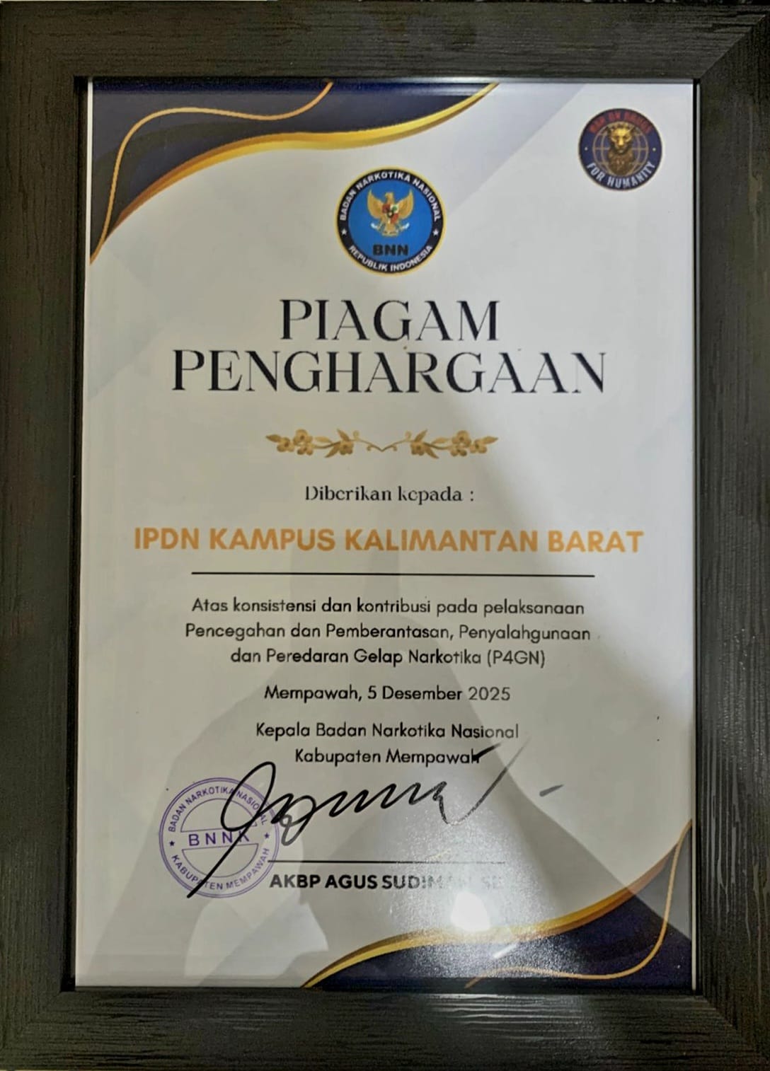 IPDN Kampus Kalimantan Barat dinyatakan bebas dari narkoba setelah seluruh rangkaian pemeriksaan tes urin yang dilaksanakan oleh Badan Narkotika Nasional (BNN) terhadap praja dan seluruh civitas akademika selesai dilaksanakan. Pemeriksaan tersebut merupakan bagian dari upaya pengawasan sekaligus langkah preventif untuk memastikan lingkungan pendidikan tetap bersih dari penyalahgunaan narkotika.